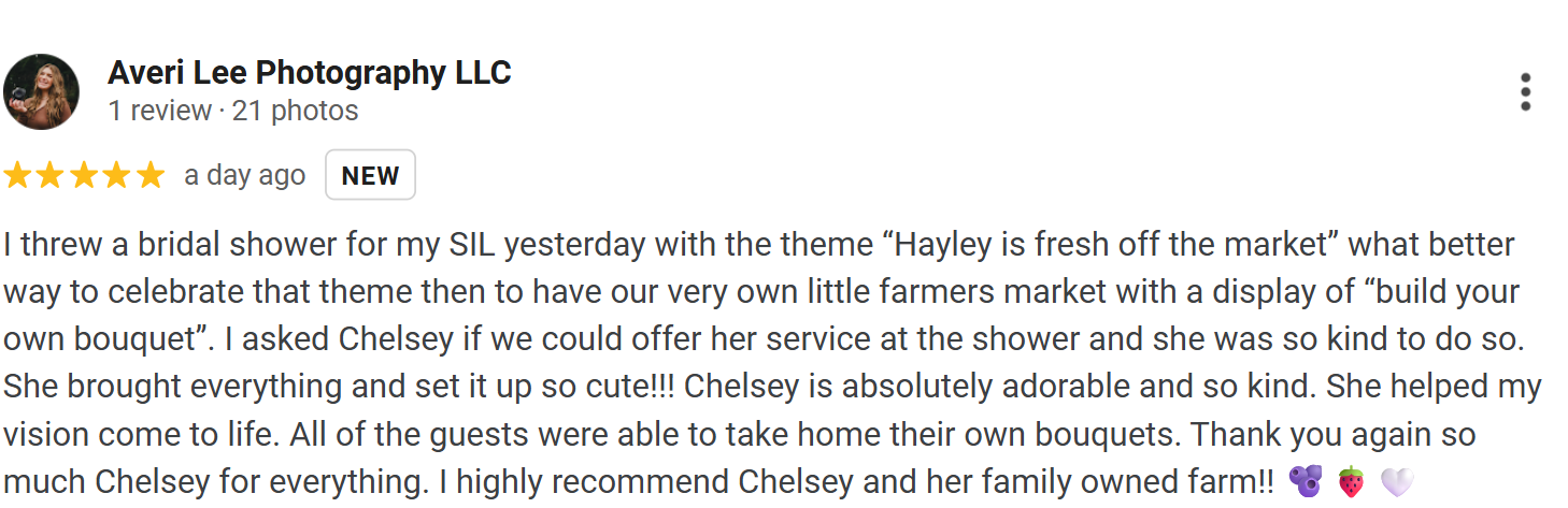 We hand-select seasonal flowers, all grown and sourced locally for the freshest, most beautiful stems.
